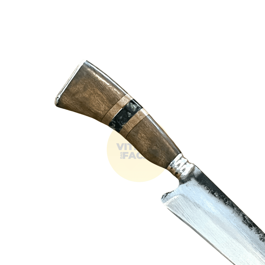 Faca Artesanal Churrasco 9" VF Gauchita, uma ferramenta robusta e elegante para os verdadeiros apreciadores de churrasco.