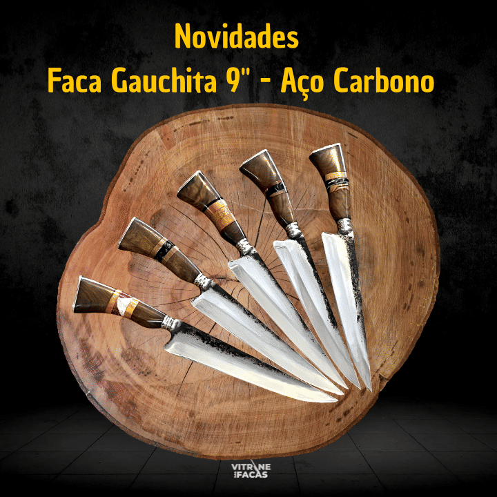 Faca Artesanal Churrasco 9" VF Gauchita Aço Carbono 1070