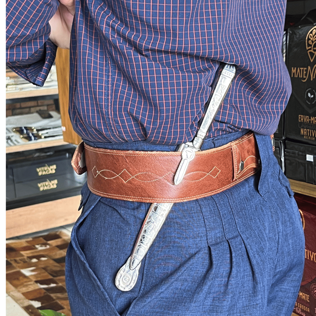 Este produto acompanha bainha de couro, certificado