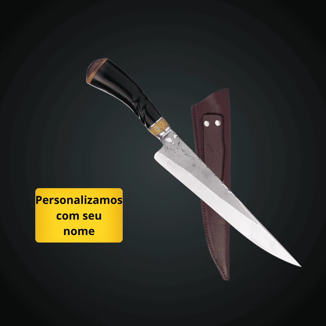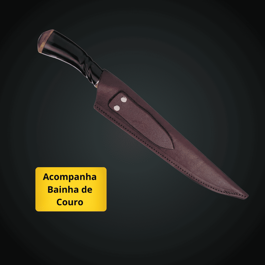 Acompanha bainha em couro legítimo, feita sob medida para proteger a lâmina e facilitar o transporte com segurança e estilo.