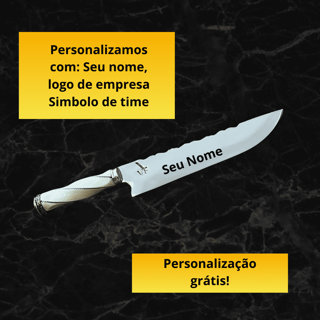 Ela pode ser personalizada com seu nome na lâmina, logo de empresa ou escudo do time do coração.