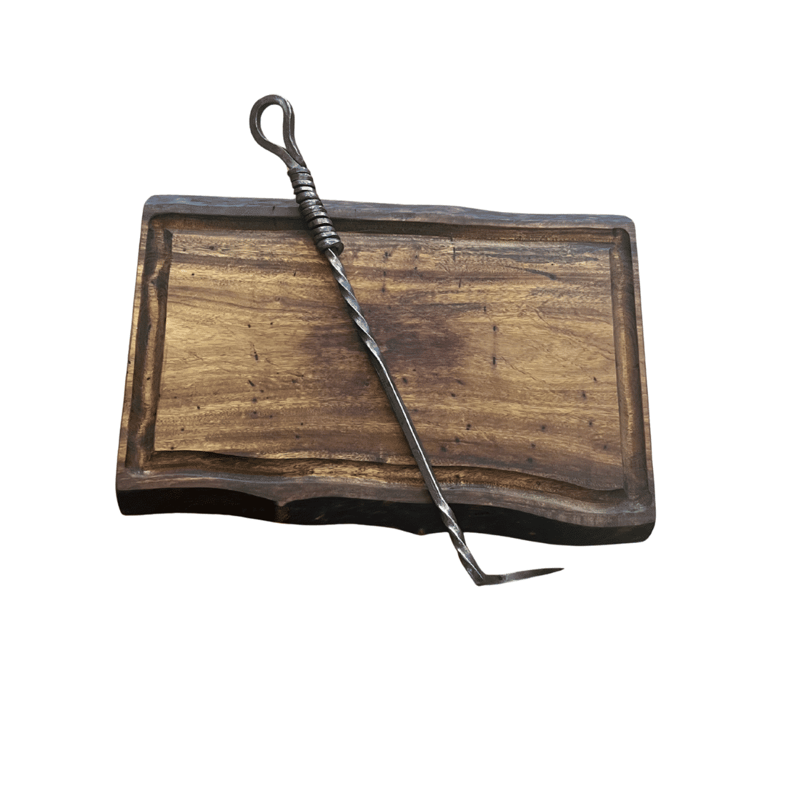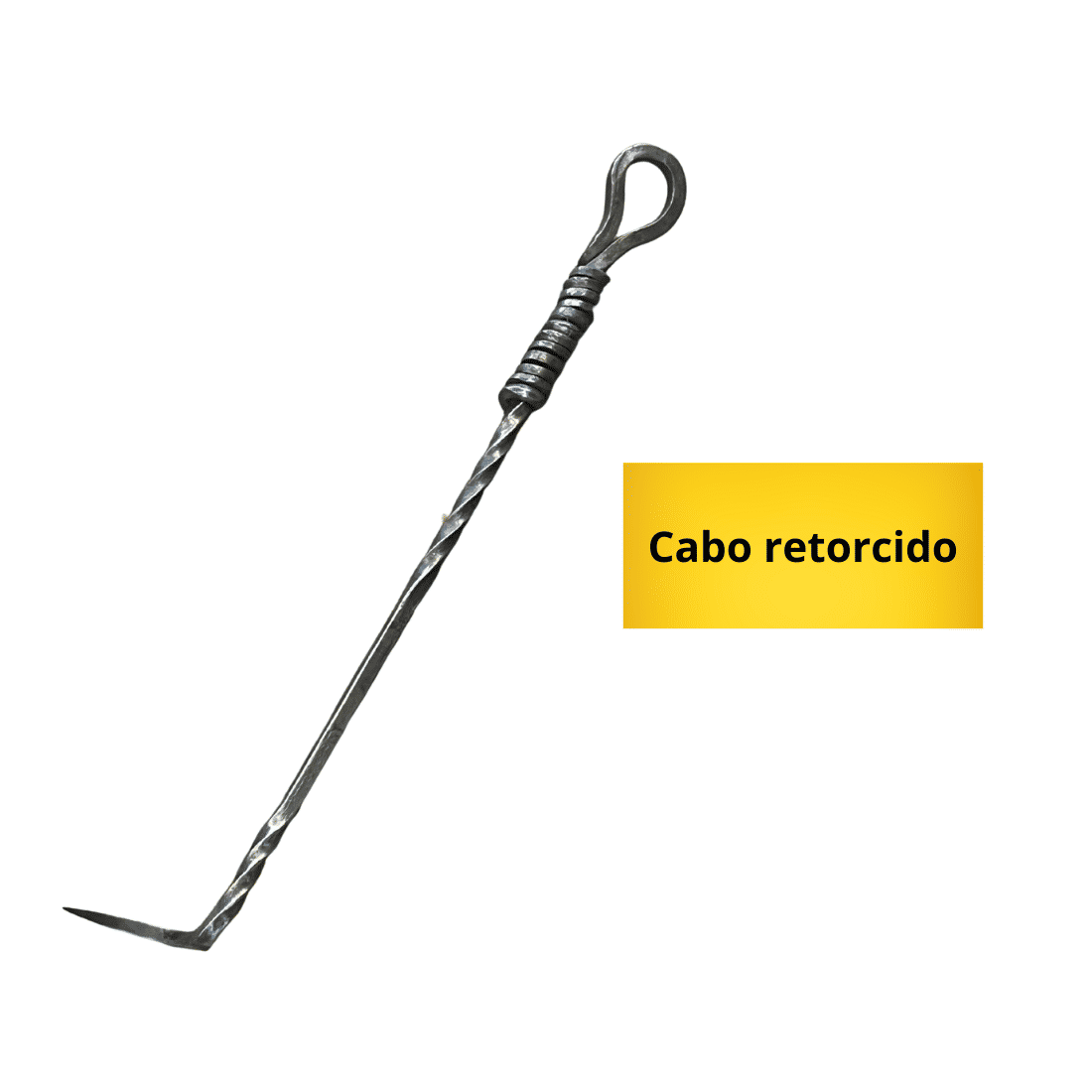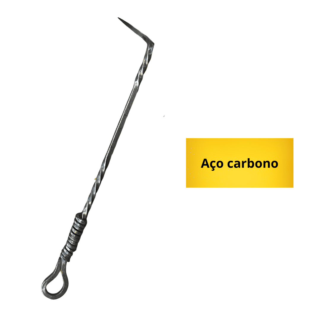 Seu comprimento de 50cm garante distância segura do fogo, proporcionando mais conforto no uso, enquanto o cabo em madeira natural oferece pegada firme, isolamento térmico e um visual rústico sofisticado. O acabamento artesanal valoriza cada detalhe, tornando cada peça única.